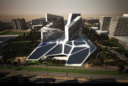 The solar roof behaves much like a leaf, with veins that divide the solar field into serviceable units and also transport energy, in this case hot water, back to the building where the energy is used to significantly reduce the need for air conditioning and to provide hot water. Beneath the roof lies an urban-scale entertainment district of cinemas, restaurants, shops and a theatre. The scale and degree of privacy transitions from the main entertainment strip to the south and the residential and hotel towers to the north.
